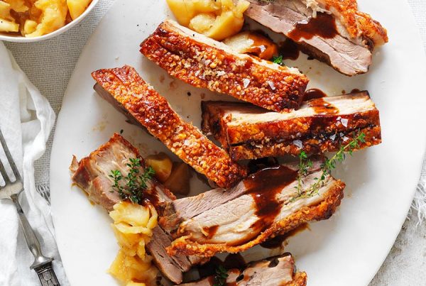 Crispy Skin Pork Belly with Maple & Mustard Apples